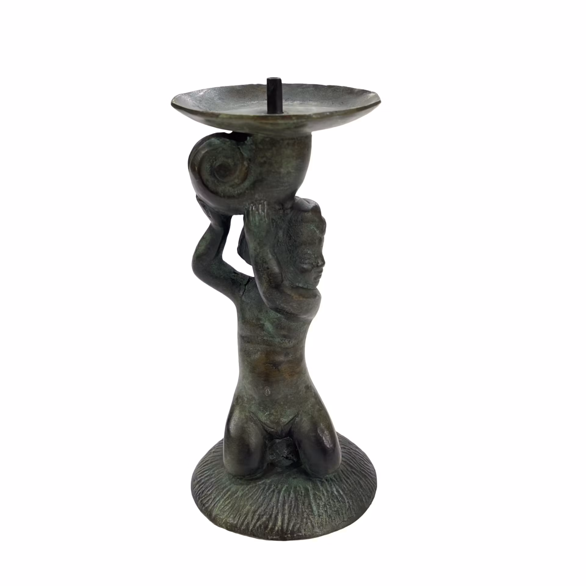 Puttiens mjuka former och den skulpterade snäckans eleganta linjer ger fontänen ett uttryck som är både dekorativt och arkitektoniskt balanserat. En skulptural mittpunkt som åldras vackert i sin miljö.