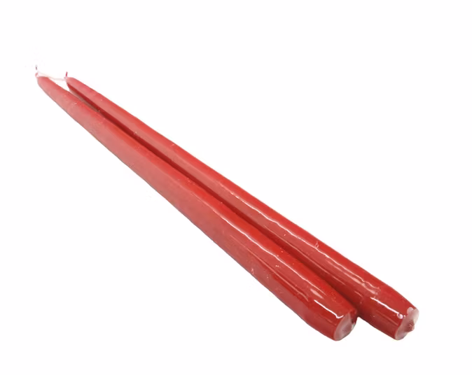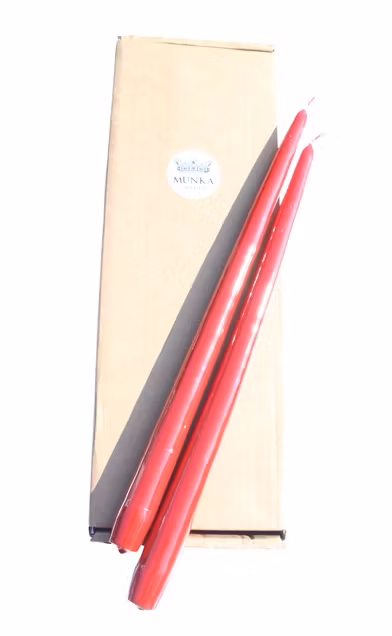 Här är ett svensktillverkat vaxat mörkrött antikljus av utmärkt kvalitet som vi rekommenderar till våra ljusstakar. Längden är 35 cm och gjorda helt i stearin. Du köper dem i en förpackning om 12 ljus.