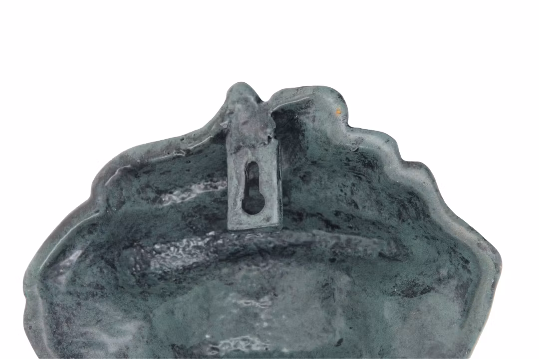 Här har vi en vacker väggfontän med ett antikt ansikte, gjuten i aluminium och svartlackerad. För att klara av vattenpåfrestningar är den också epoxilackerad.